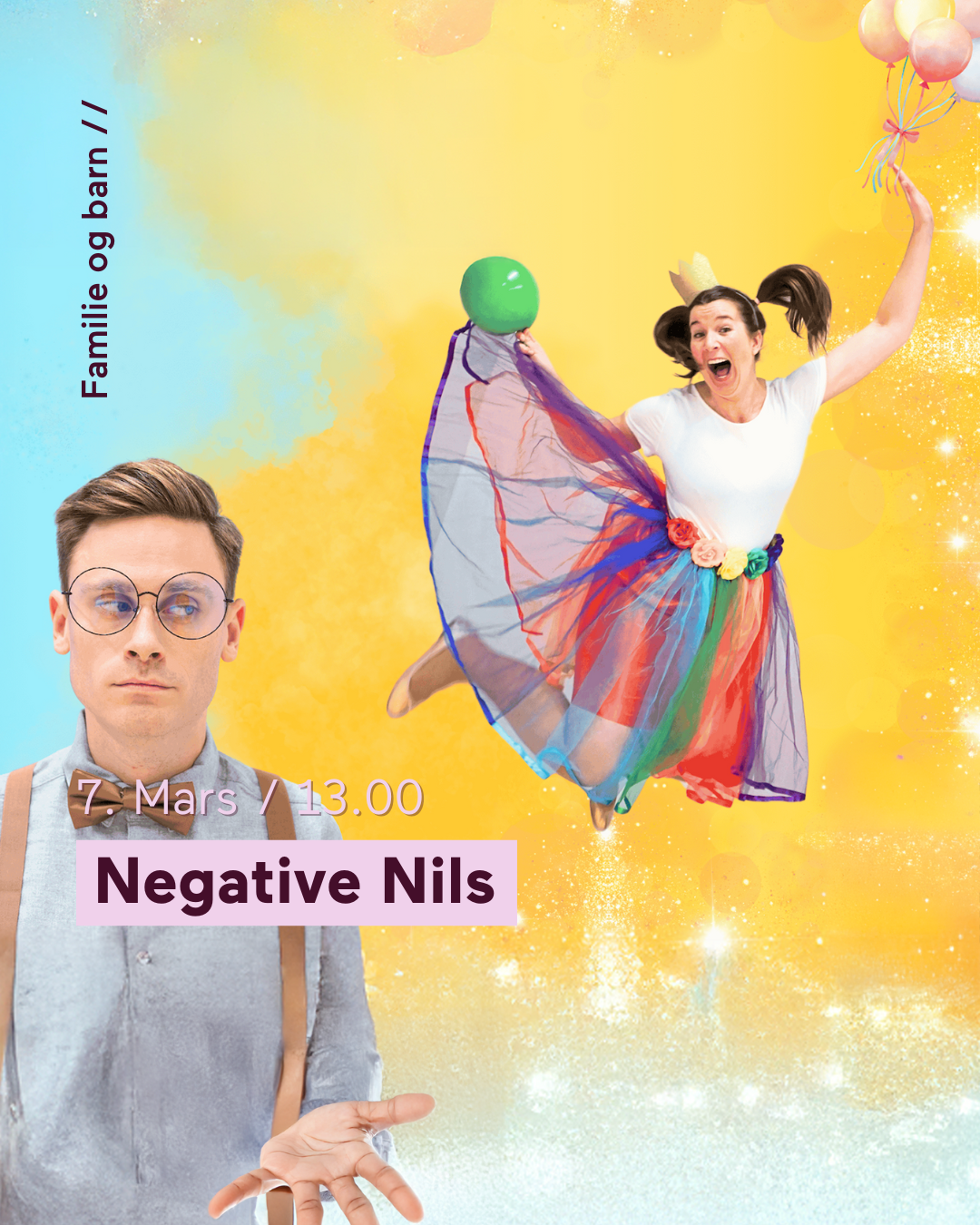 Kle deg ut og bli med på maskeverksted, karnevalsdisko og bursdagen til Janne Marianne med Negative Nils på besøk.